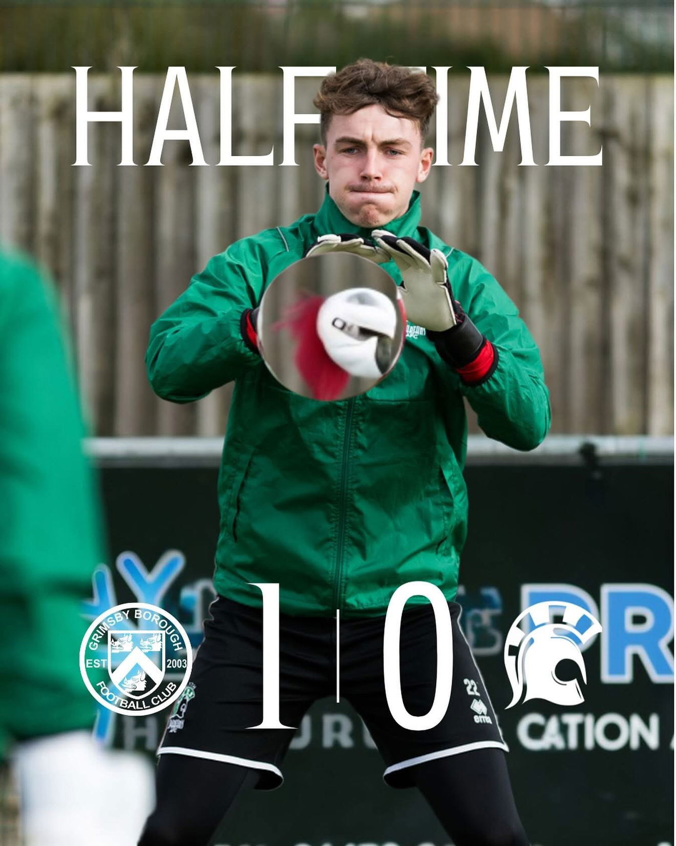 Weather conditions didn't allow them to go long, with the ball frequently spinning back in the direction of Callum Dobson, which meant Grimsby Borough could keep pressuring the Spartans' defence from goal kicks, but they held off that wave of pressure well in the opening period, with Dobson only having to make a few routine saves that were straight at him.